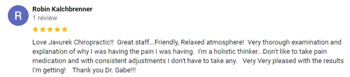 "My first experience with chiropractic was nearly 20 years ago. I had neck pain and the Dr. said I would only need to come see him 3 times. Nearly 10 years later I started seeing a different chiropractor because I was given a free exam and it was determined that I had some "issues" with my neck and spine. I continued to seeing that doctor for a few years and then stopped for a year because I just did not feel as if he was doing me any good. However, I came back when I started getting headaches again. I now see Dr. Gabe every two weeks and I no longer have lower back pain and the neck pain is considerably better. My quality of life is a lot better now that I don't have to be in pain all the time. I am a believer in chiropractic care!"